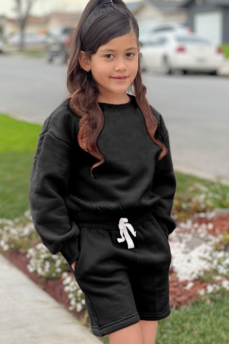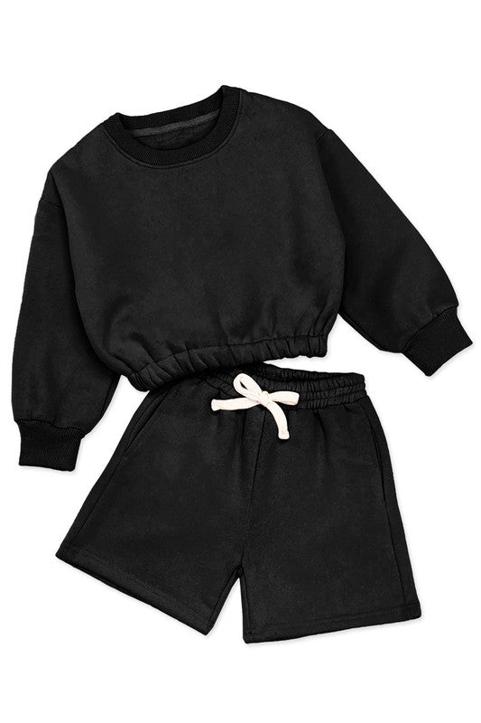 Toddler's 2 pc Short Jog Set W/ Ribbed Neckline & Smocked Elastic Waistband
