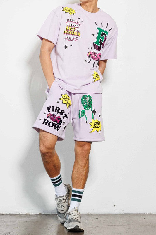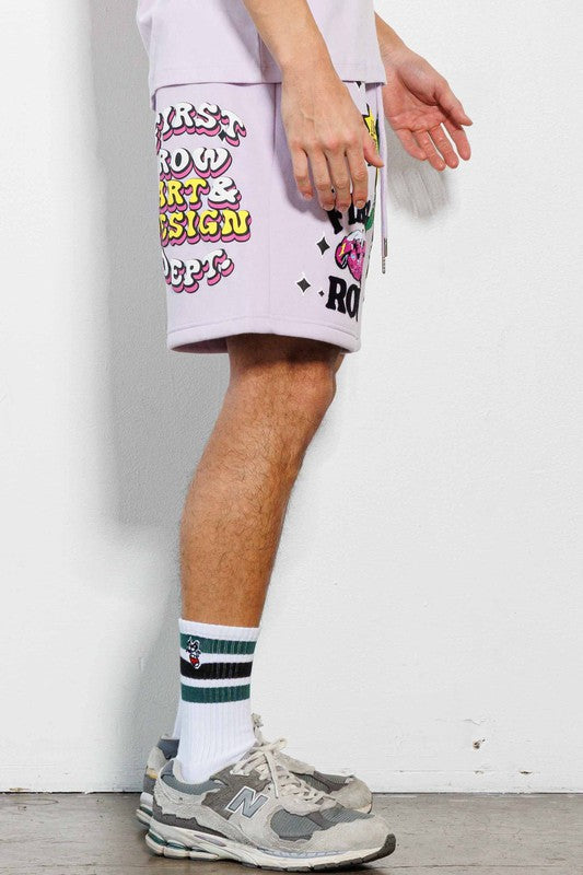 Kaneda'S Bike Flock Emb. Graphic Shorts