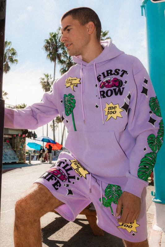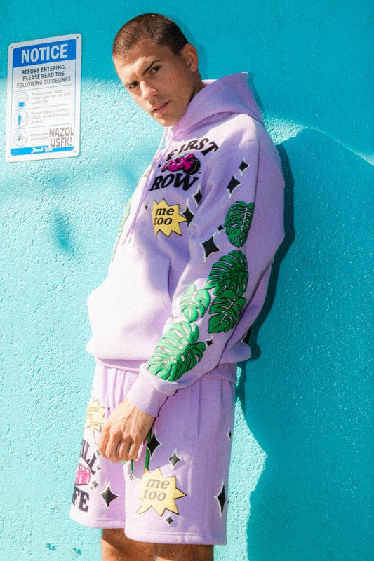 All Over Flock Embroidery Sweat Hoodie. Featuring Relaxed Oversize Silhouette With Cozy Fleeced Feel Inside, Rib-Knit Banding At The Cuffs/Hem For A Comfortable Fit And Complete With An Adjustable Drawstring Hood, Front Kanga Pocket.