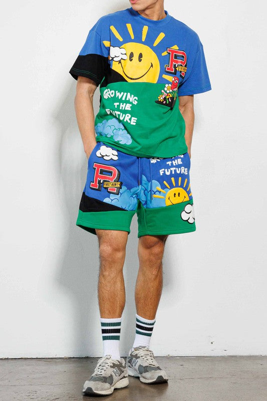 All Over Embroidery Sweatshorts. Featuring A Slim And Tapered Silhouette With Cozy Fleeced Feel Inside, An Adjustable Drawcord At The Waist, Matching Ribbed Fabric On The Waist, Raw Hemline, Side Pockets And One Back Pocket.