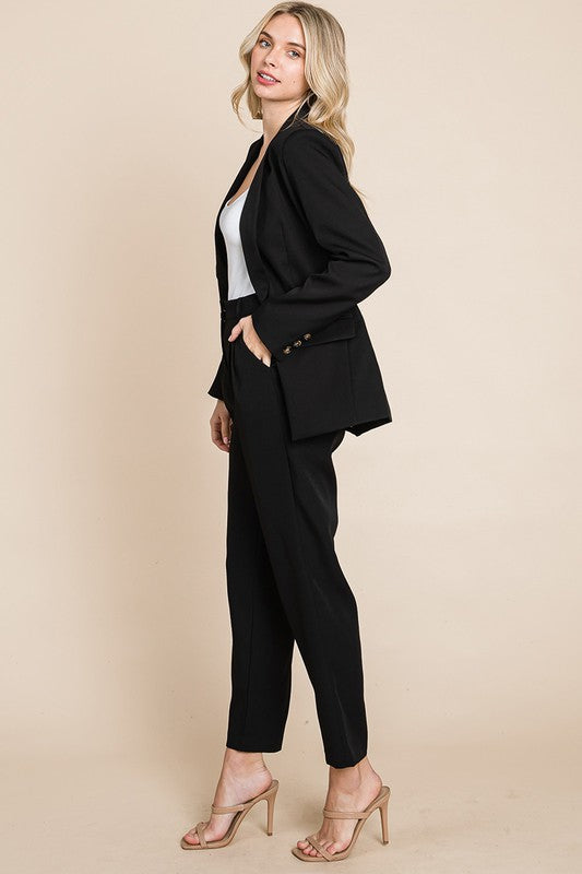 Black Single Breasted Blazer & High Waisted Pants Set