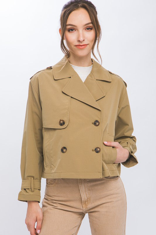 Cropped Trench Jacket With Belt Sleeve Detail