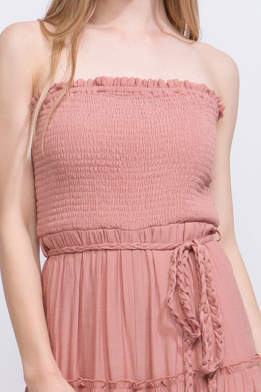 Clay Woven Solid Sleeveless Smocked Ruffle Jumpsuit