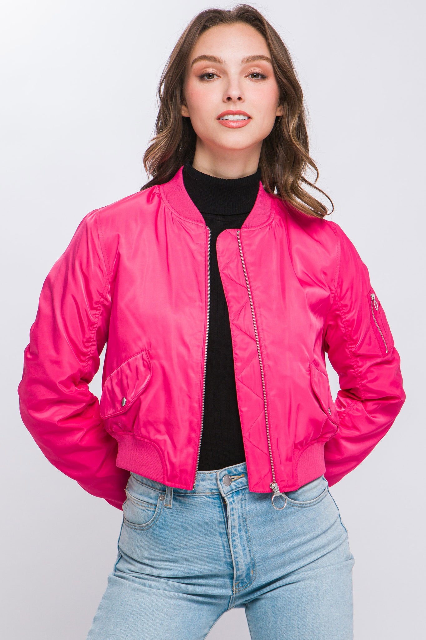 Fuchsia Zip Up Bomber Jacket With Sleeve Zipper Detail