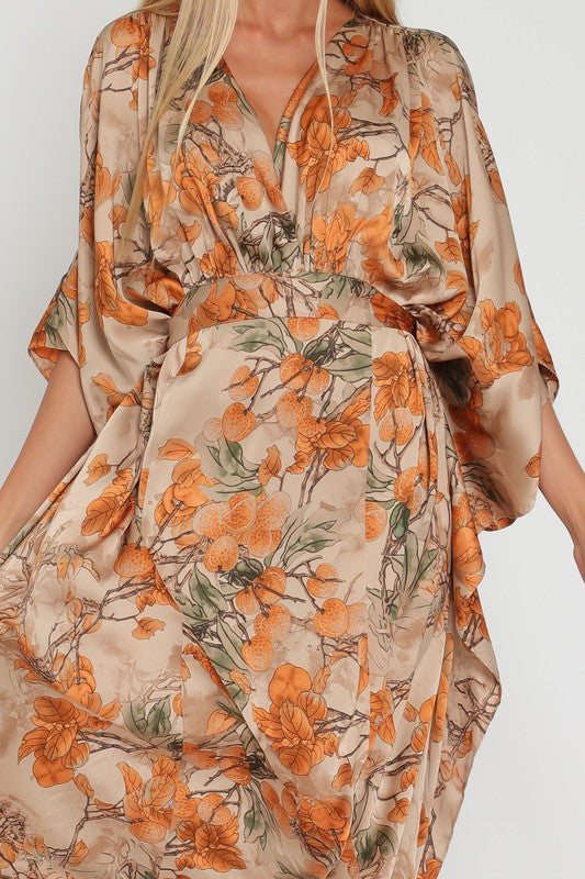 Kimono Sleeve Tie-Back Waisted Maxi Dress