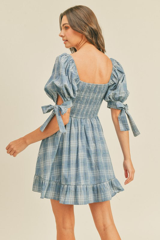 + Plaid Smocked Mini Dress+ Square Neckline+ Smocked Bodice+ Short Puff Sleeves With Tying Detail+ Ruffle Hem+ Model Is 5' 9" 32-24.5-34.5 And Wears A SFabric Contents100% Cotton