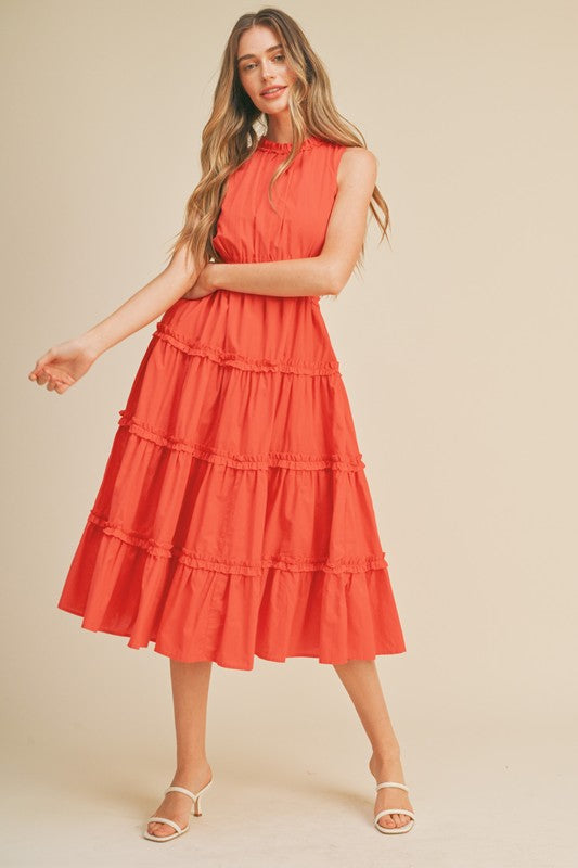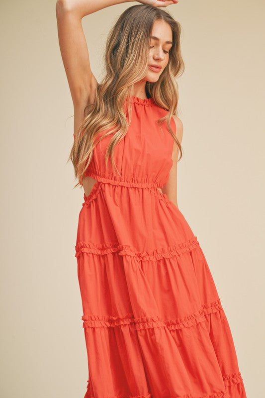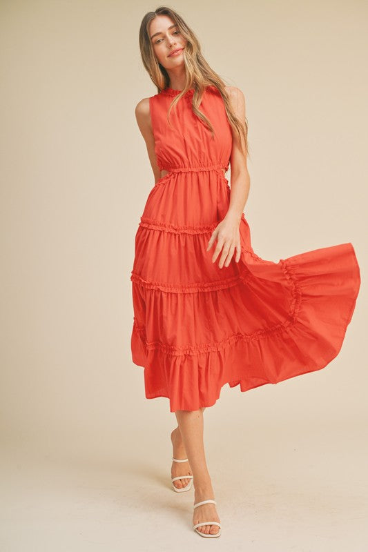 + Ruffle Tiered Cut-Out Midi Dress+ Sleeveless+ Ruffle Trim+ Cut-Out Detail On Sides+ Ruffle Tiered Seams+ Pockets+ Hidden Back Zipper+ Model Is 5' 10" 33-24-37 And Wears A SFabric Contents100% Cotton