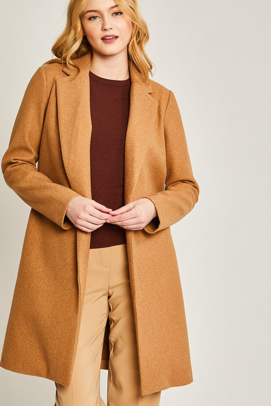 Camel JQ Fleece Long Line Coat