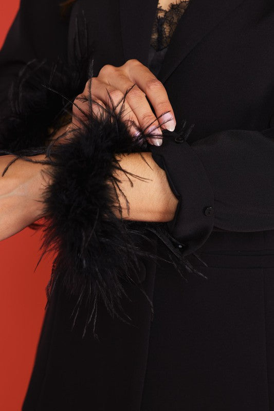 Skies Are Blue | Detachable Feather Cuff Blazer