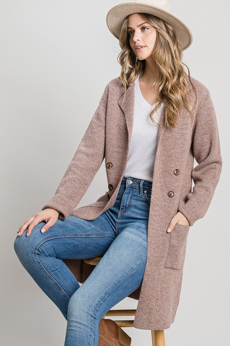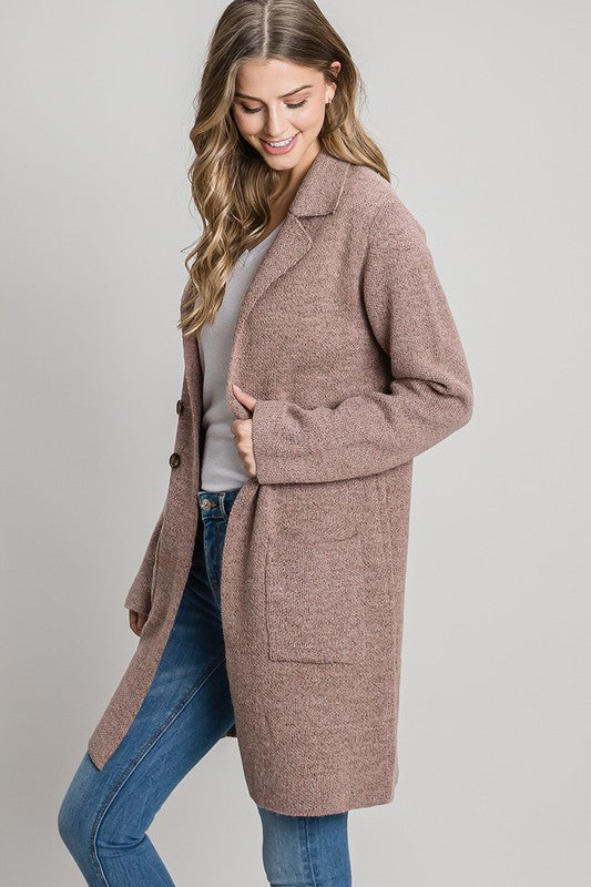 Long Double Breast Blazer Coat With A Notched Collar And Front Pockets. A Style We Bring Back Every Fall Season, A Classic Silhouette Adjusted For Comfort. Fabric Contents72% Acrylic 20% Nylon 8% Polyester