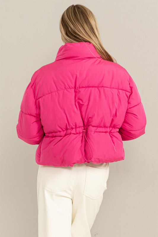 This Quilted Jacket Is Cozy Yet Oh So Edgy! It Has Been Designed With A Stand Collar, Long Sleeves And A Comfortable Silhouette That Boasts A Silver-Toned Zipper Down The Front To Keep You Warm. Style Yours With High-Waisted Pants For A Cute, Retro Vibe.