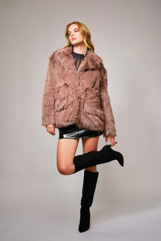 Mocha Shaggy Notch Collared Faux Fur Coat