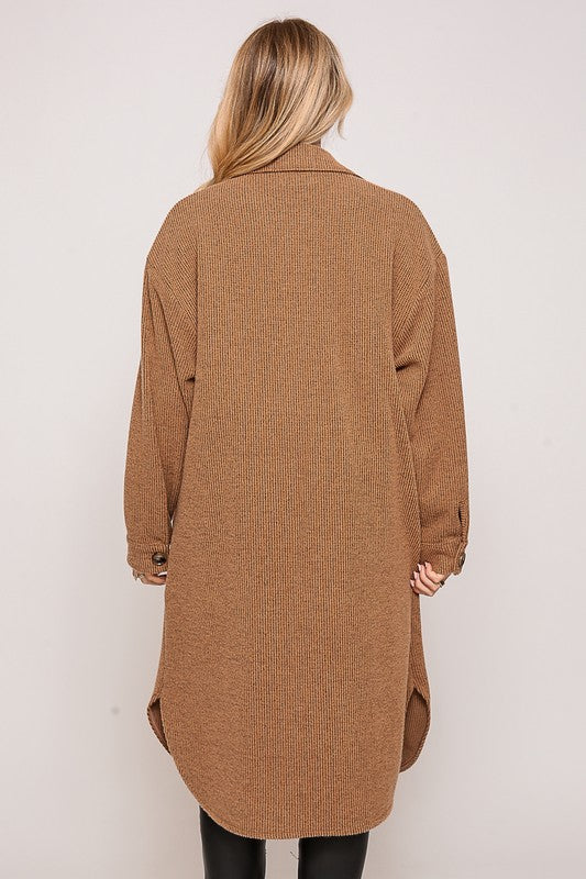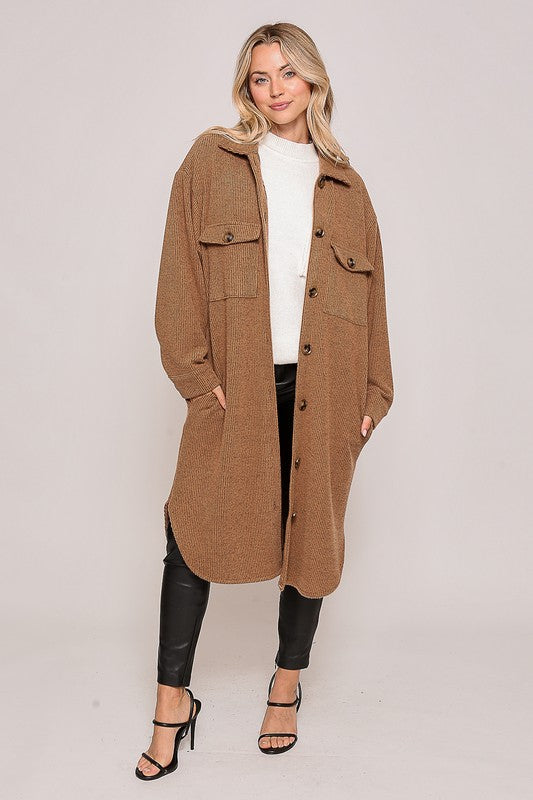 Stylish And Cozy Ensemble! A Long-Sleeved, Button-Down Brushed Waffle Oversized Shaket That Exudes Warmth And Sophistication. A Front Double Pocket Casual Jacket, Perfect For On-The-Go Outings, Completes The Look. Don't This Masterpiece And Embrace Effortless Fashion.