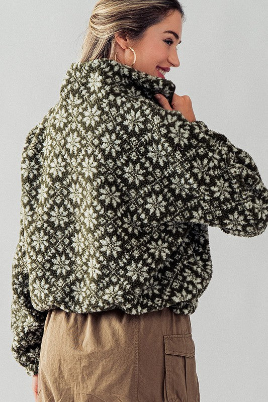 Green Sherpa Fleece Snow Flake Pattern Jacket