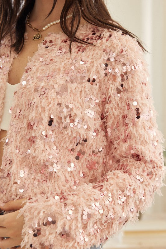 Soft Pink Feathered Sequin Embellished Jacket
