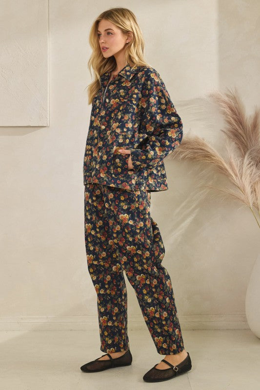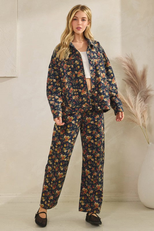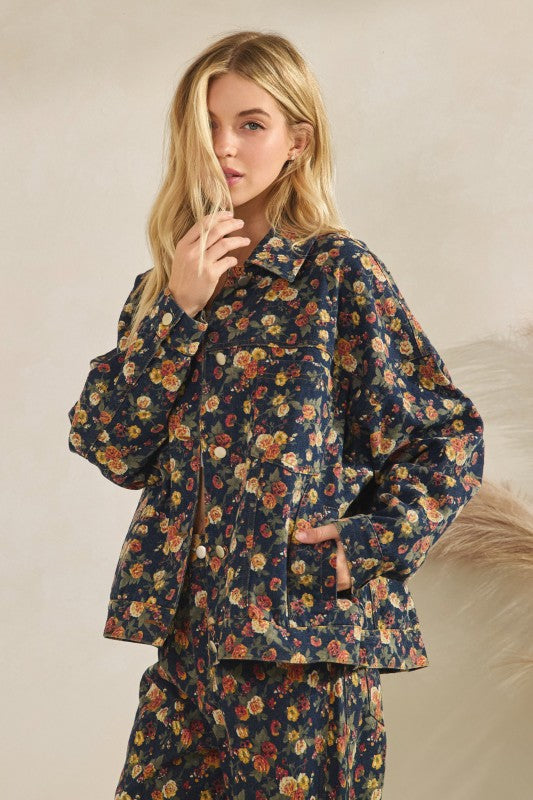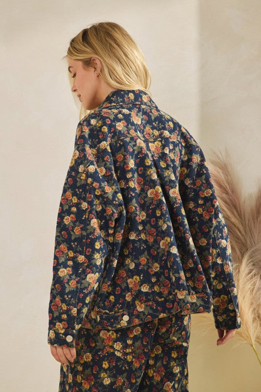 Add A Romantic Touch To Your Outerwear Collection With This Twill Floral Denim Jacket. Made From Structured Yet Lightweight Twill Denim, This Jacket Showcases An All-Over Vintage-Inspired Rose Print. Designed With A Relaxed Fit, Front Snap Buttons, And Double Chest Pockets, It's Perfect For Layering Through Fall, Winter, Or Even Those Chilly Spring Mornings. A Cozy And Charming Pick For Boutiques Stocking Up For Holiday Markets Or Festive Gifting Season.Floral Denim Jacket, Twill Rose Jacket, Vintage Floral Outerwear, Floral Trucker Jacket, Romantic Denim Layering, Fall Floral Jacket, Holiday Boutique Jacket, Cozy Floral Coat, Feminine Denim Jacket, Boho Floral Print