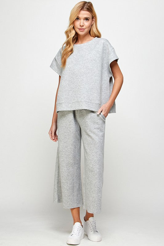 Grey Textured Cropped Wide Pants