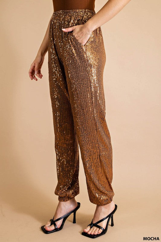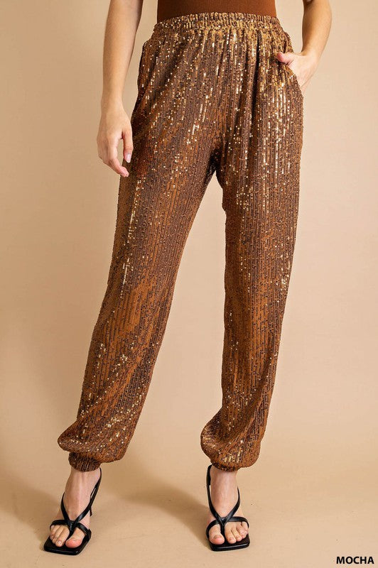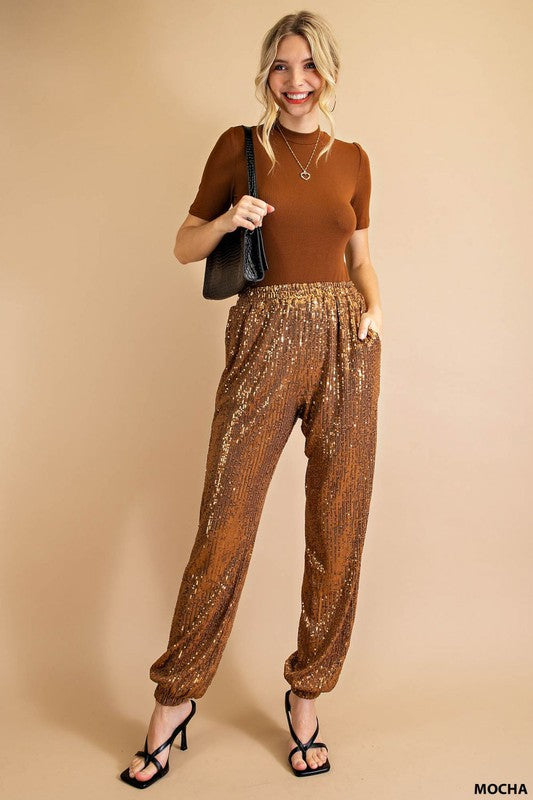 Mocha Full Lined Sequin Jogger