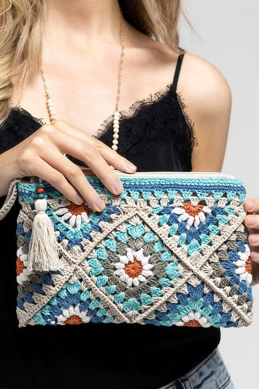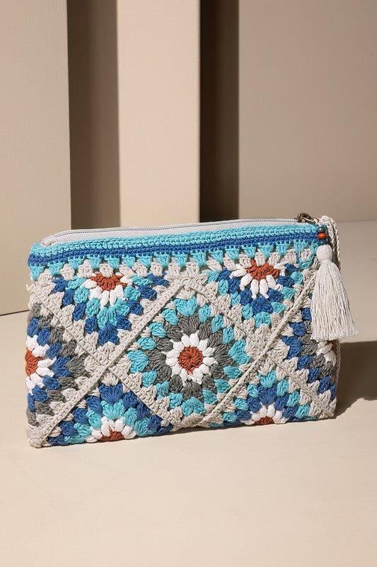 Stunning Handmade Vibrant Crochet Tile Fully Lined With Zipper Closure And Wristlet