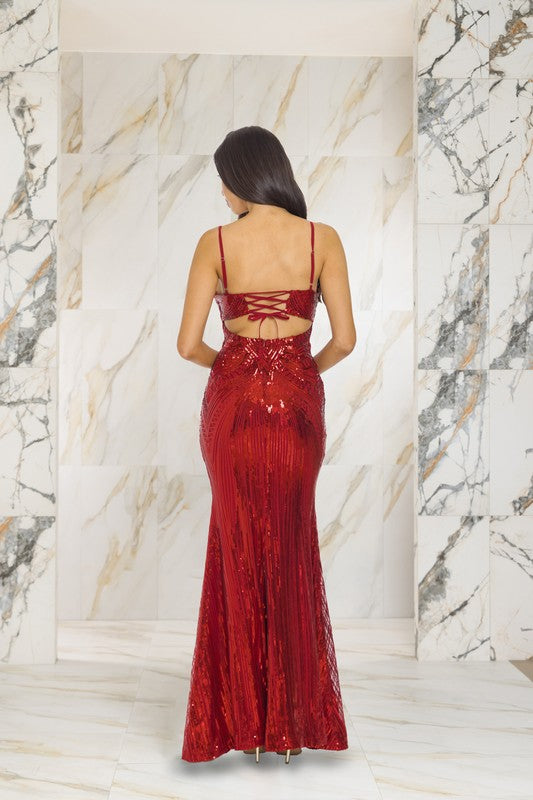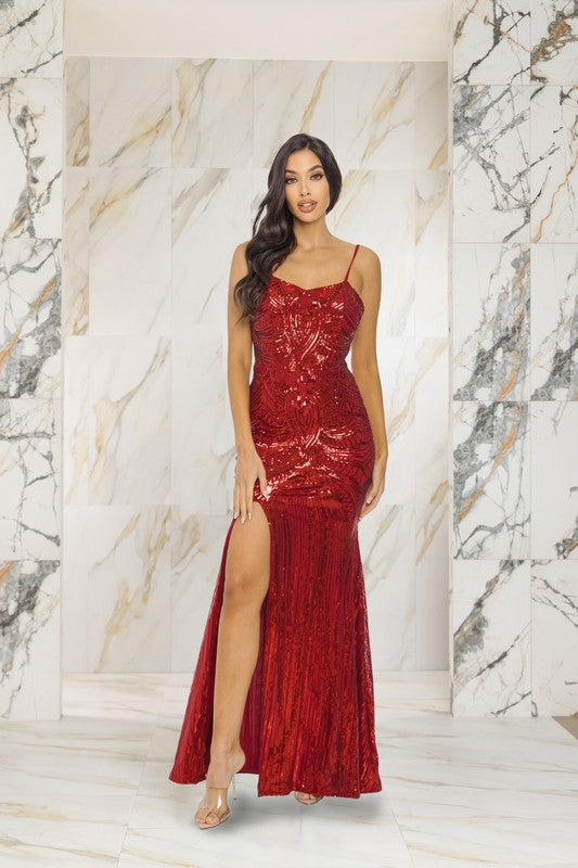 Sleeveless Maxi Dress Featuring Right Leg Slit, Adjustable Straps, And Open Back.Fabric Contents100%Polyester