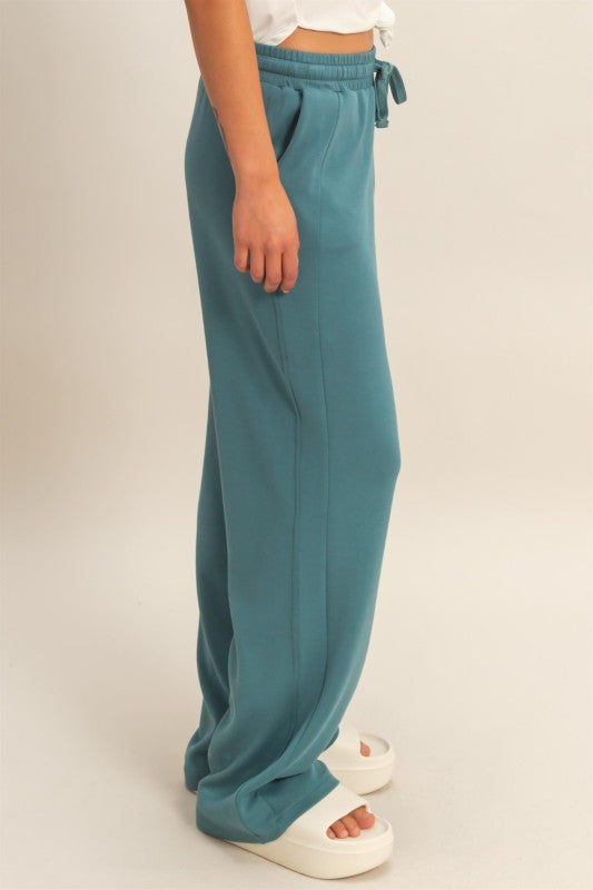Dark Teal Elastic Waist Wide-leg Pants