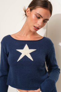 Add A Touch Of Starlit Charm To Your Wardrobe With The Aria Star Knit Top! This True Knit Sweater Features A Chic Boat Neckline And Long Sleeves, Striking The Perfect Balance Between Comfort And Style. Its Semi-Cropped Length Makes It Ideal For Pairing With High-Waisted Bottoms, While The Soft, Acrylic-Blend Fabric Ensures All-Day Coziness. Style Aria For A Look That's Both Laid-Back And Ready To Shine, From Day To Night.