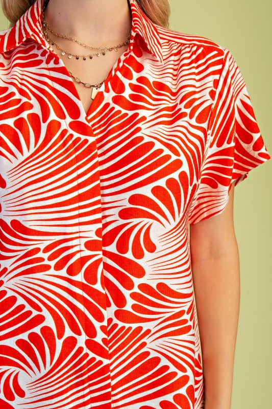 Orange Printed Button Up Tunic