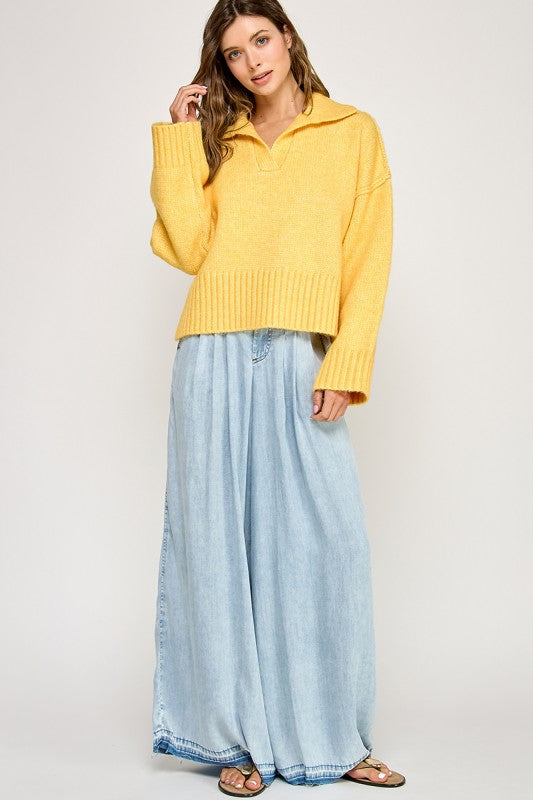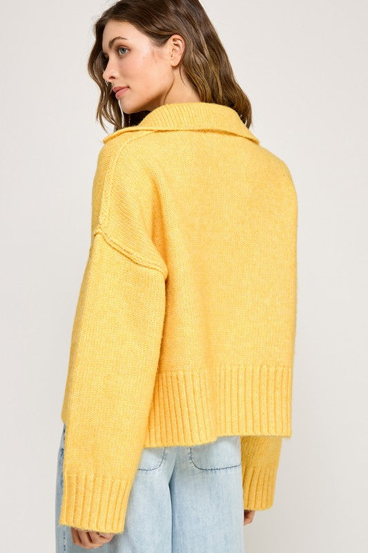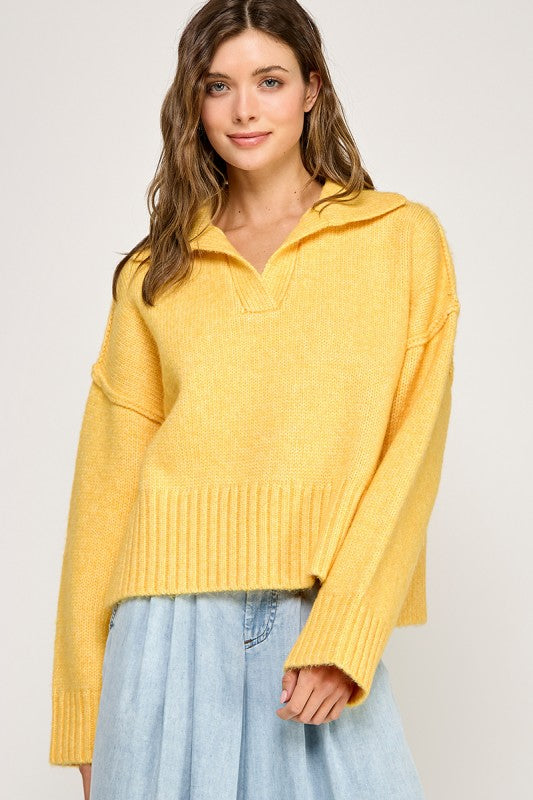 Long Sleeve Sweater With Polo Collar. Rib Trim.Fabric Contents33% Rep, 20% Acrylic, 36% Polyester, 11% Nylon