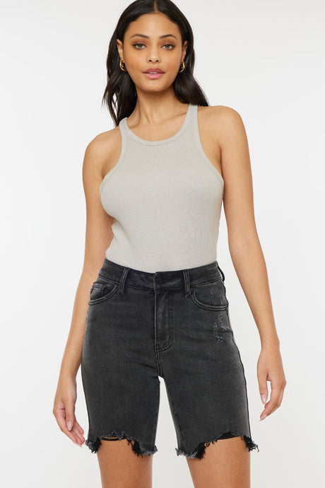 Dark Open Pack Mid Rise Distressed Hem Detail Bermuda