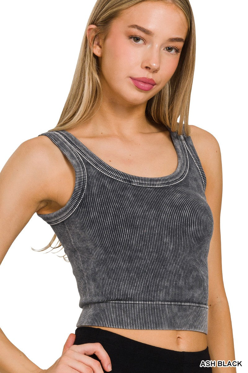 Washed Ribbed Cropped Scoop Neck Tank Top