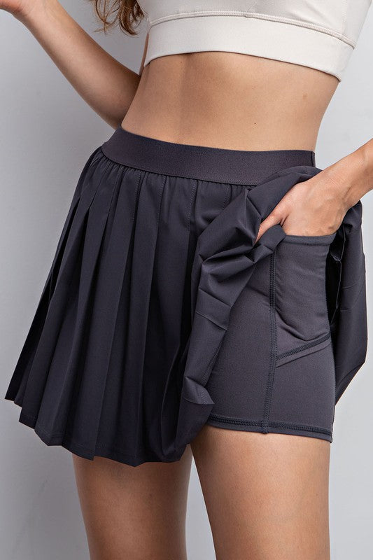 This Stretch Woven Skort Is Made With A Combination Of Our Specialized Butter Soft Fabric For A Flexible Waist And Comfortable Inner Shorts.