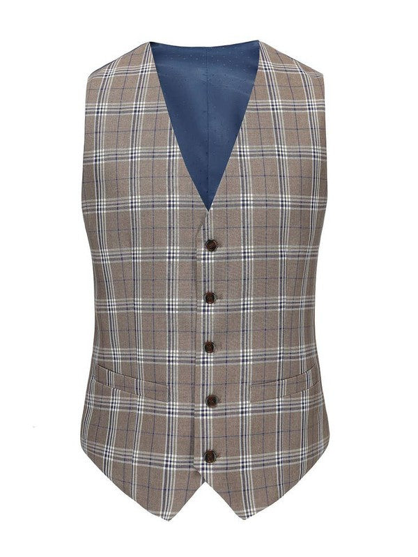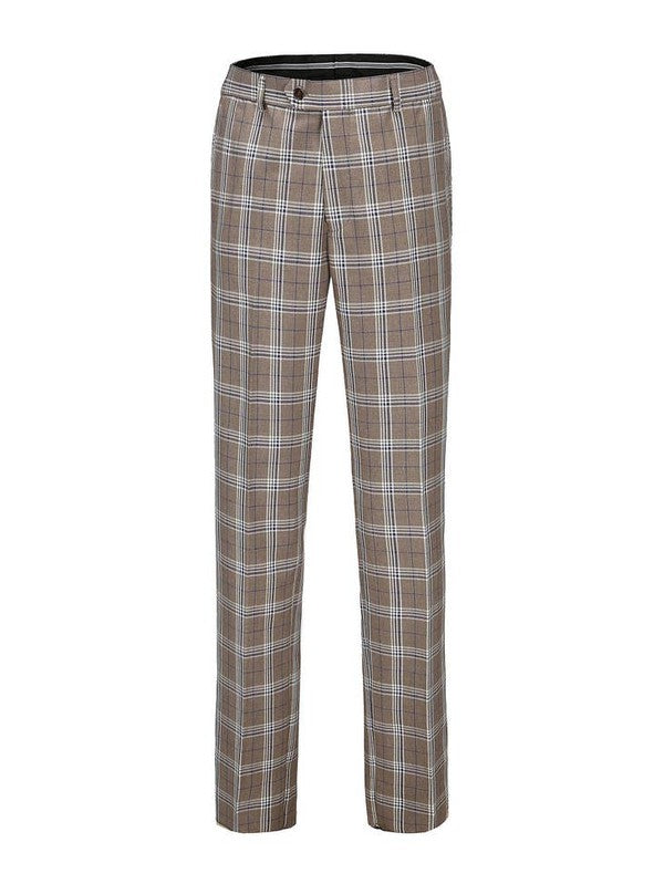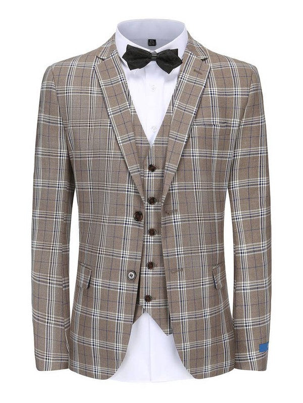 Light Brown Men's Slim-Fit 3PC Check Plaid Suit - Short