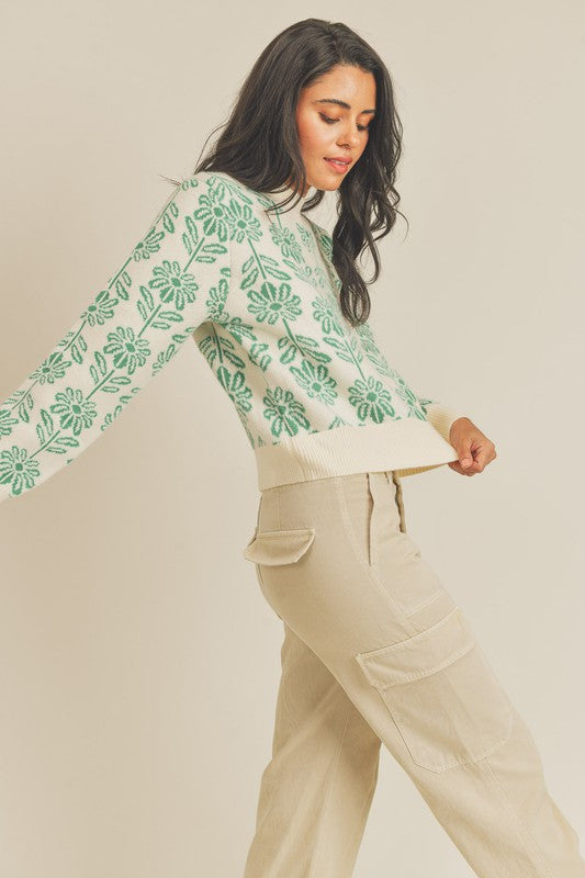 + Floral Pattern Knit Sweater+ Ribbed High Round Neckline, Hem, And Cuffs+ PulloverModel Is 5' 9" 33-25.5-36 And Wears A SFabric Contents50% Viscose 30% Acrylic 20% Polyester
