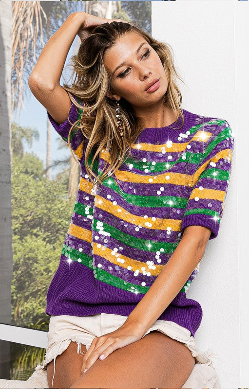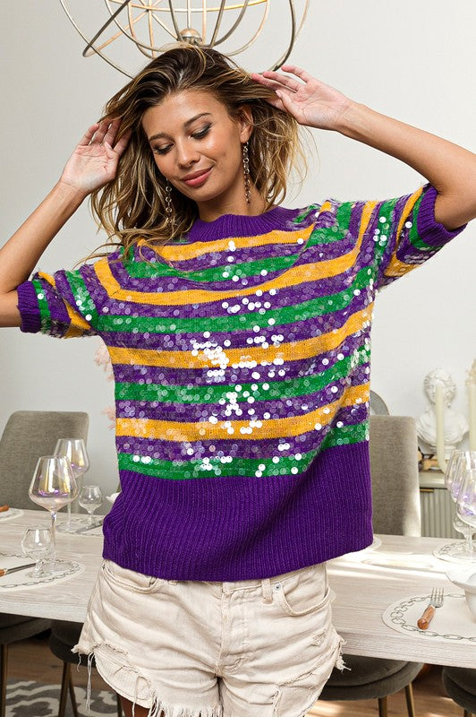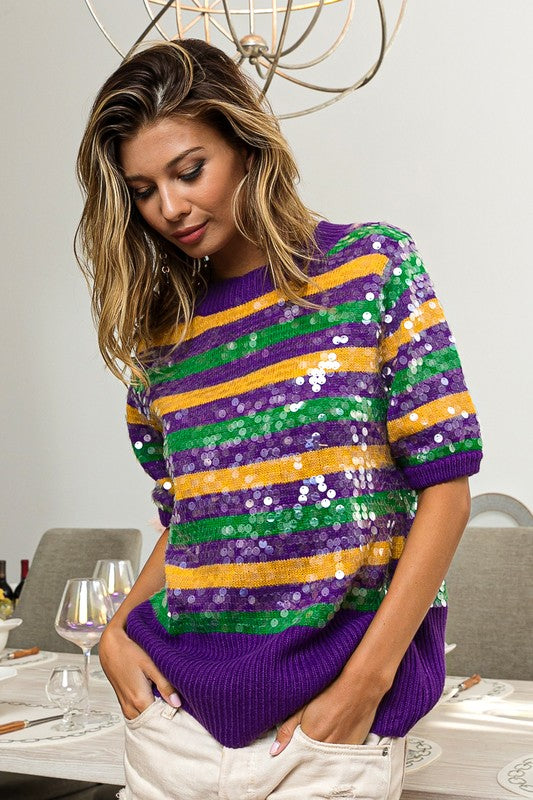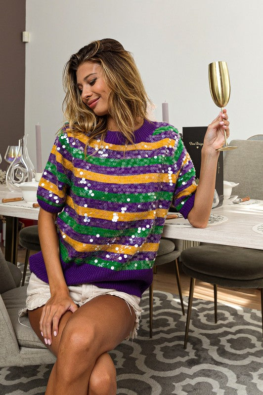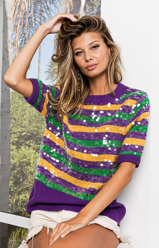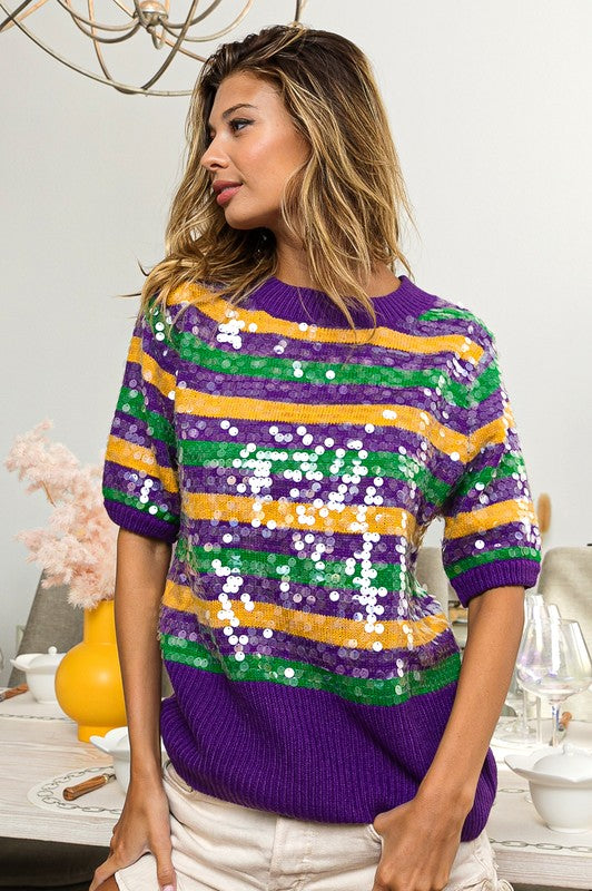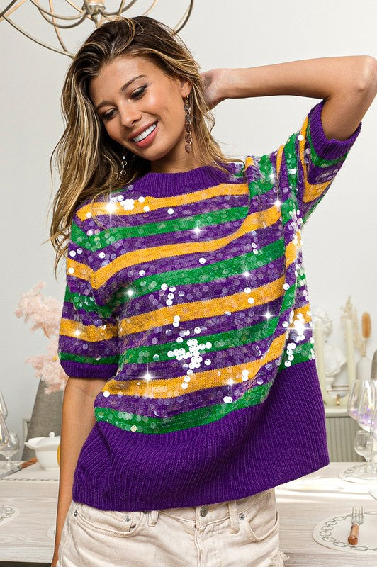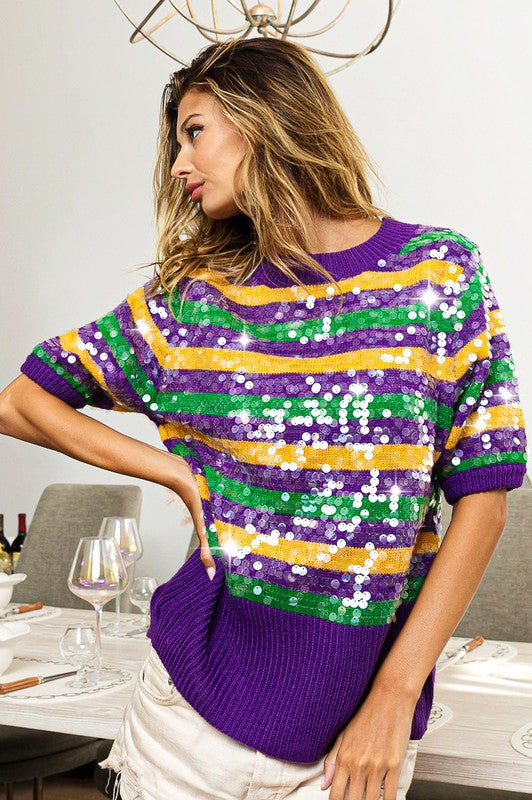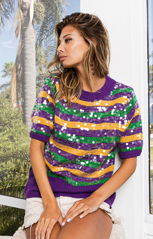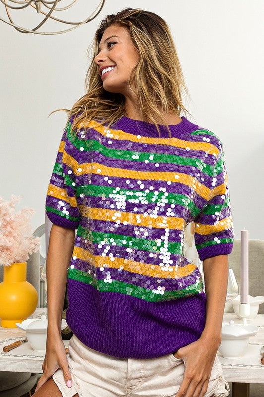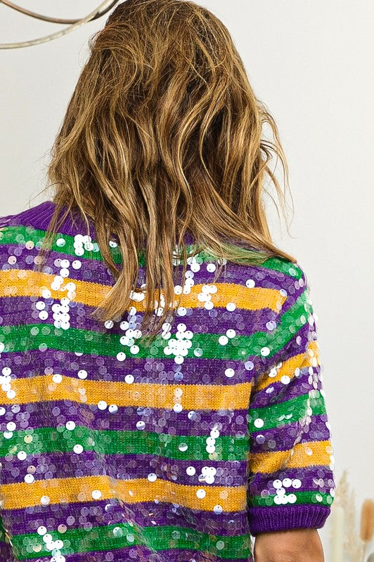 Clear Sequin Mardi Gras Sweater