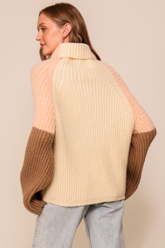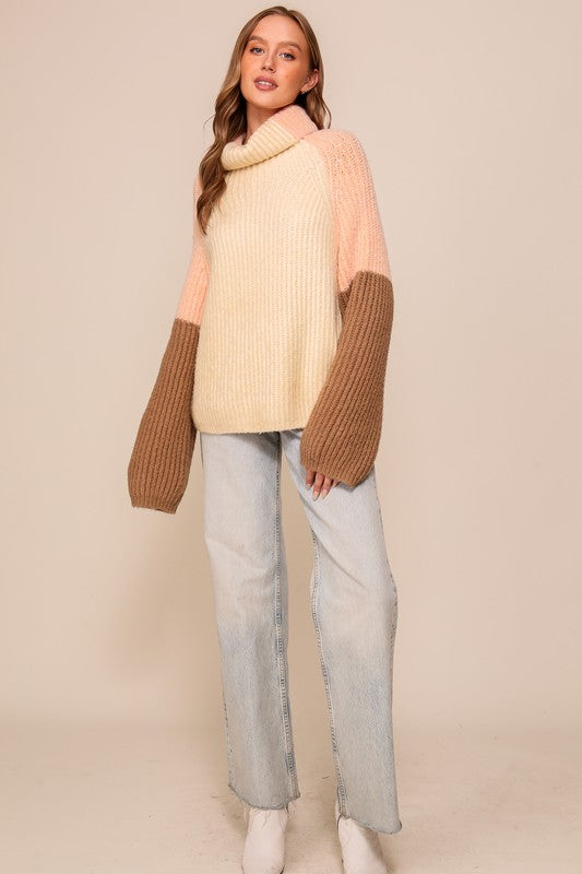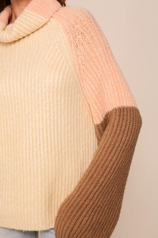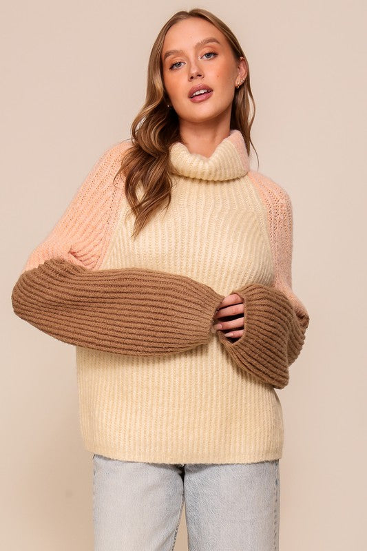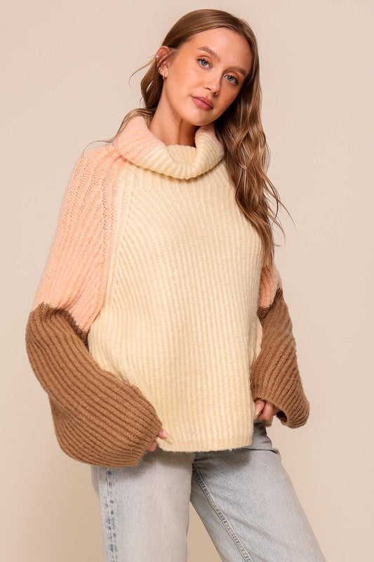 Our Ribbed Color Block Sweater With Turtleneck Is Designed To Make A Statement. This Sweater Effortlessly Blends Comfort And Fashion-Forward Design, Perfect For Staying Warm And On-Trend During The Colder Months. Crafted From A Luxurious Blend Of Materials, This Sweater Offers The Ideal Combination Of Softness And Durability. The Ribbed Texture Adds Depth And Texture To The Fabric, Creating A Visually Appealing And Tactile Experience. The Turtleneck Design Not Only Provides Extra Warmth But Also Adds A Touch Of Elegance To Your Outfit. It Can Be Worn Folded Down Or Pulled Up For Added Coziness. The Color Block Pattern On This Sweater Features Bold And Contrasting Hues, Creating A Striking Visual Impact. This Design Element Adds A Modern And Eye-Catching Twist To The Classic Turtleneck Style.