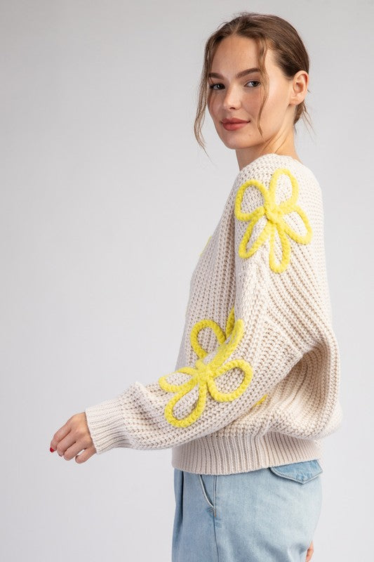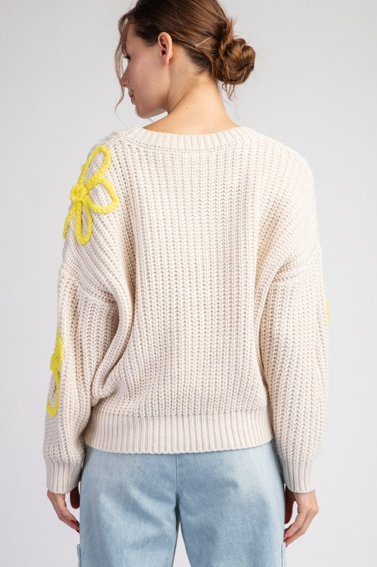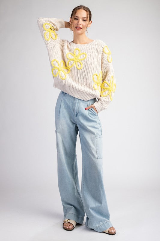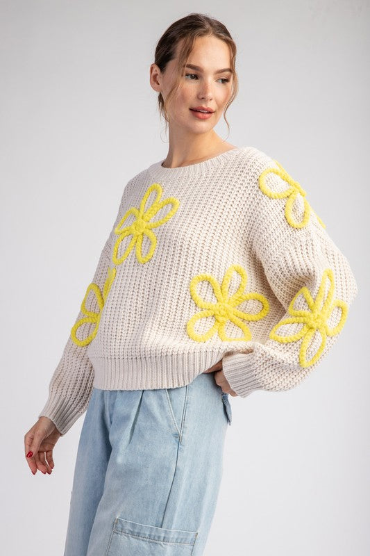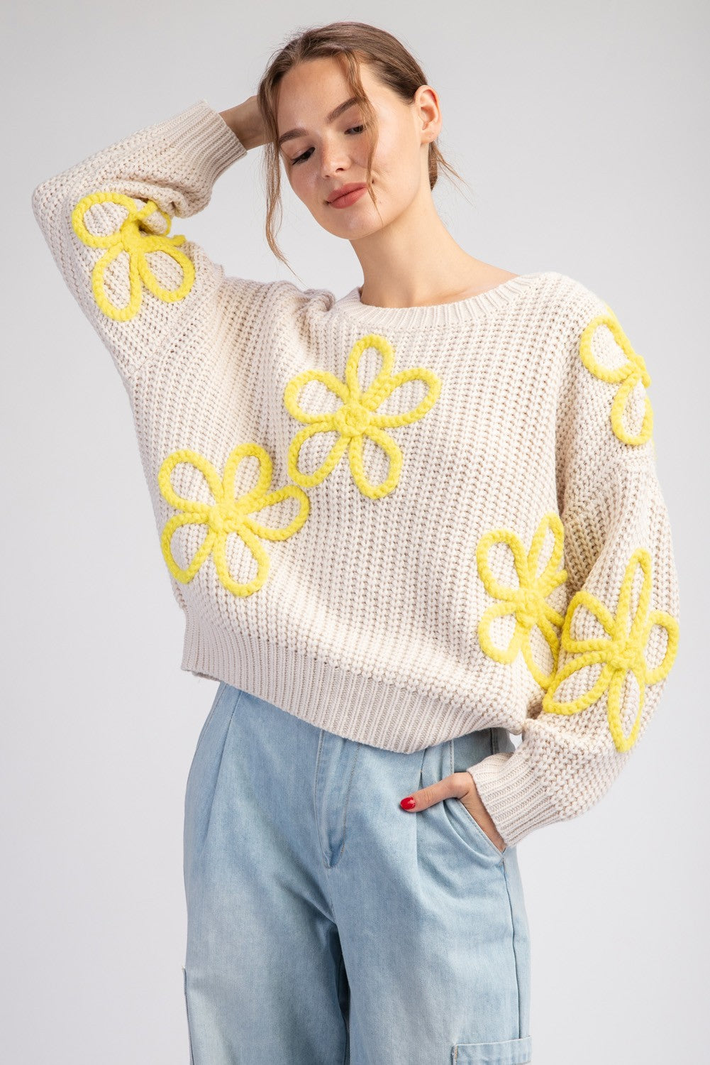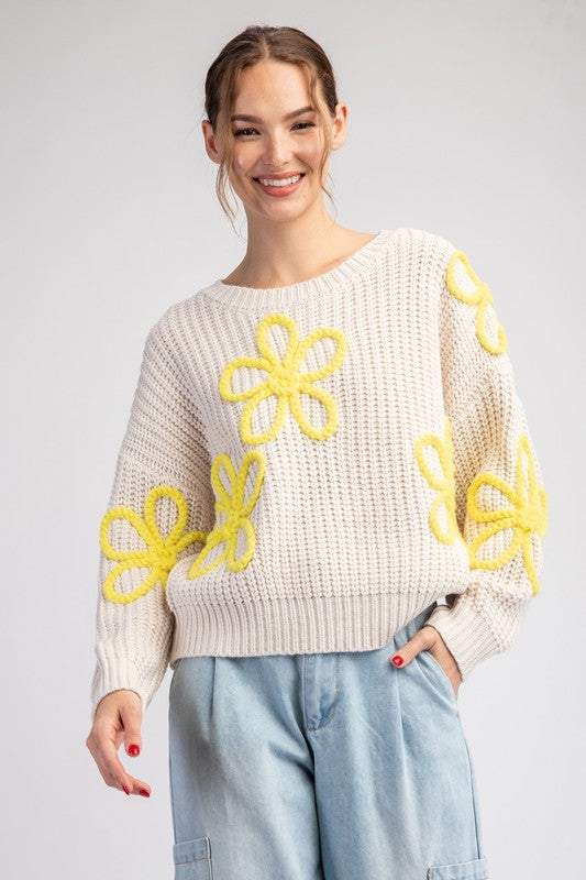 Floral Patterned Short Sleeve Sweater Top Featuring A Ribbed Round Neck, A Ribbed Bottom Band, A Ribbed Body And Is A Stretchy, Soft Fabrication. Model Is 5'8" And Wearing A Small.Fabric Contents50%Viscose 30%Polyester 20%Nylon