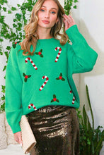 Crew Neck Long Sleeve Christmas Sequin Detail Sweater Top