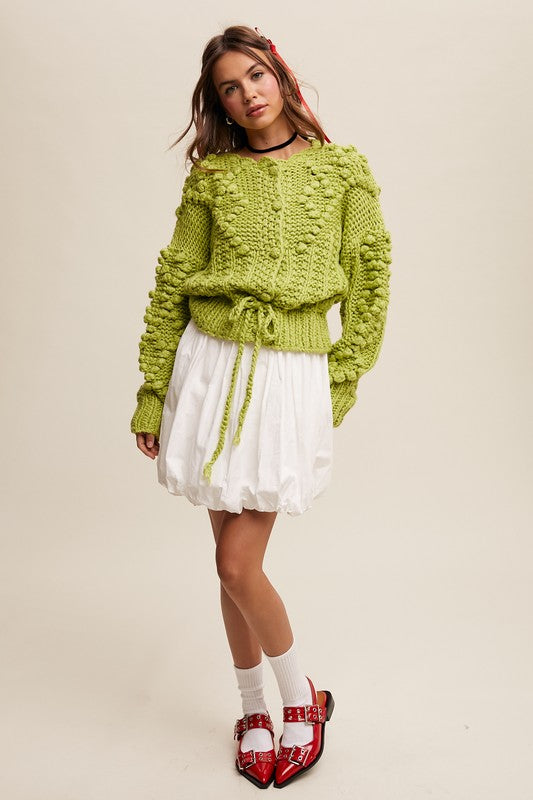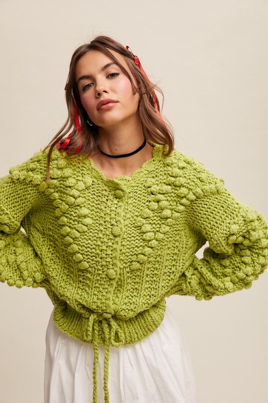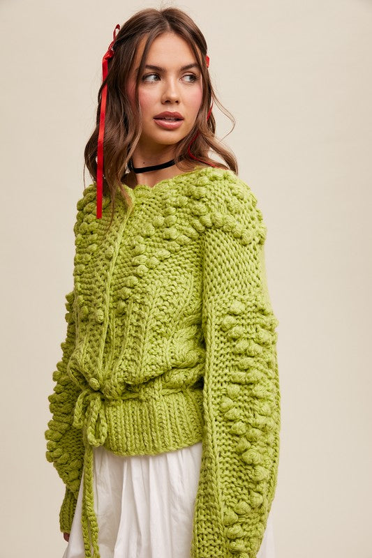 Lemon Grass Hand Crochet Tufted Dot Cable Knit Cardigan