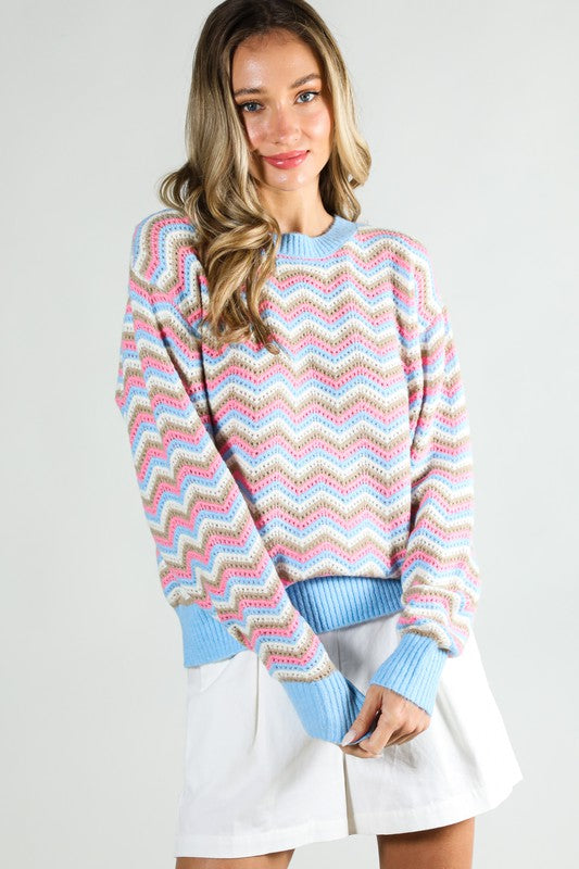 Crew Neck Long Sleeve Multi Color Sweater TopFabric Contents74% Acrylic 22% Polyester 4% Spandex