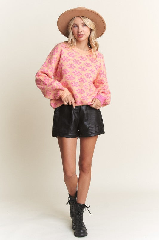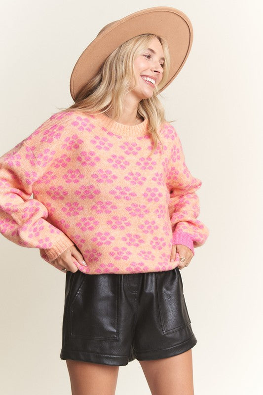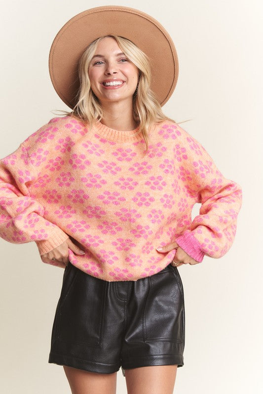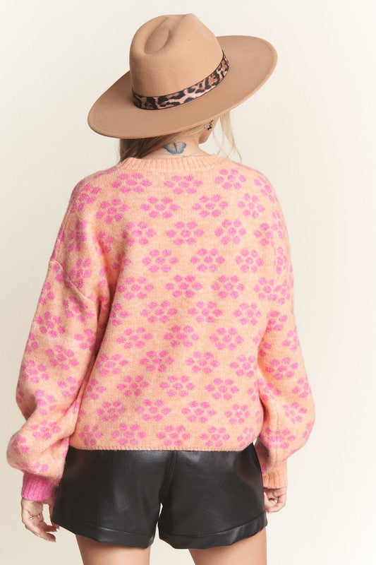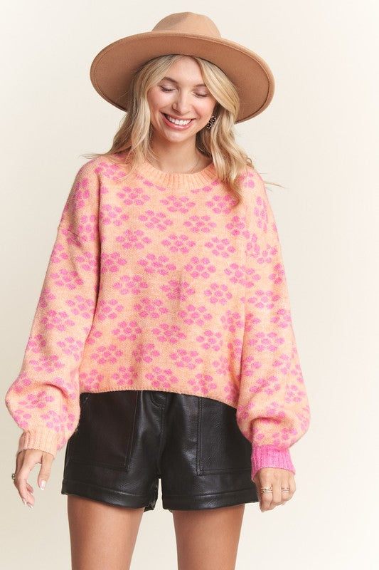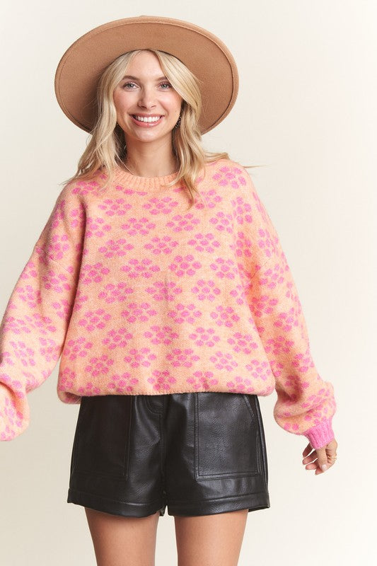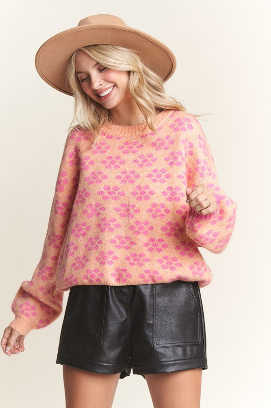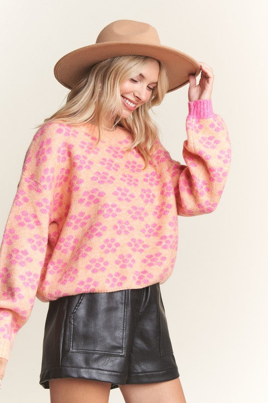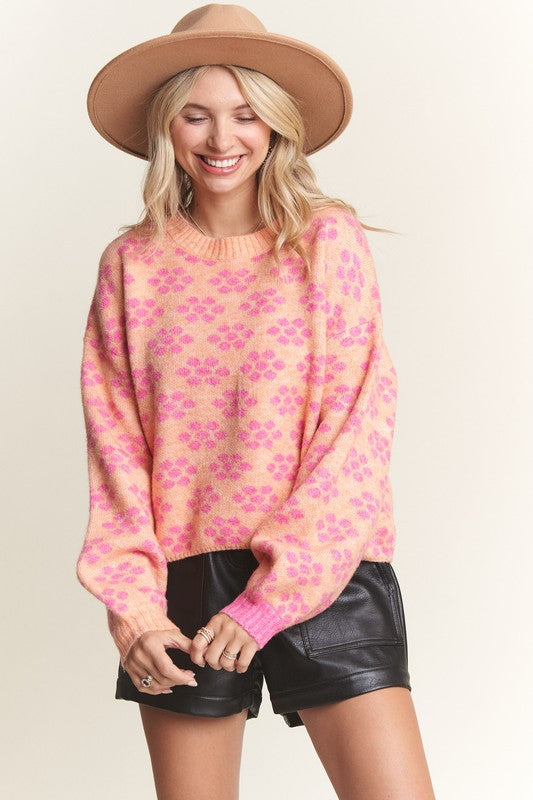Floral Pattern Cutesy Sweater Top*Dot Floral Pattern*Drop Shoulder*2 Color Combo*Soft & Cozy Sweater Knit