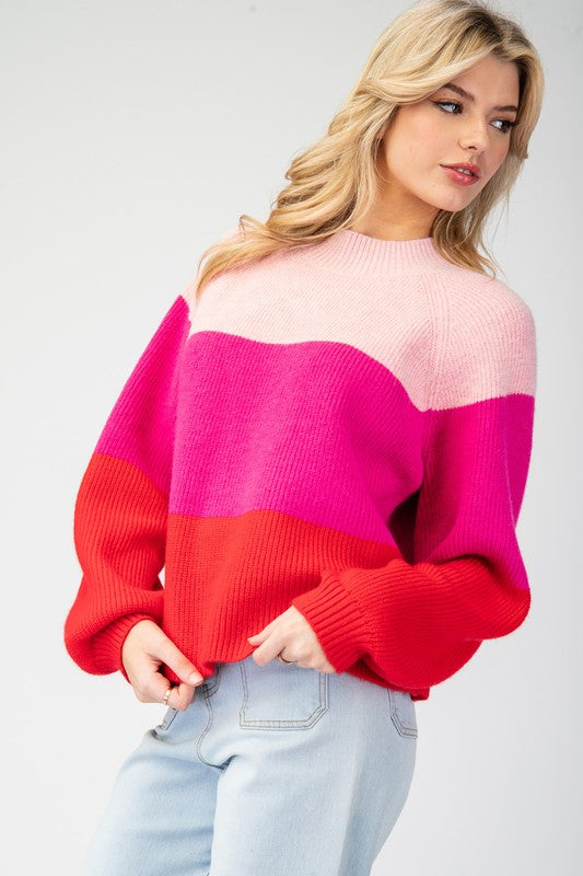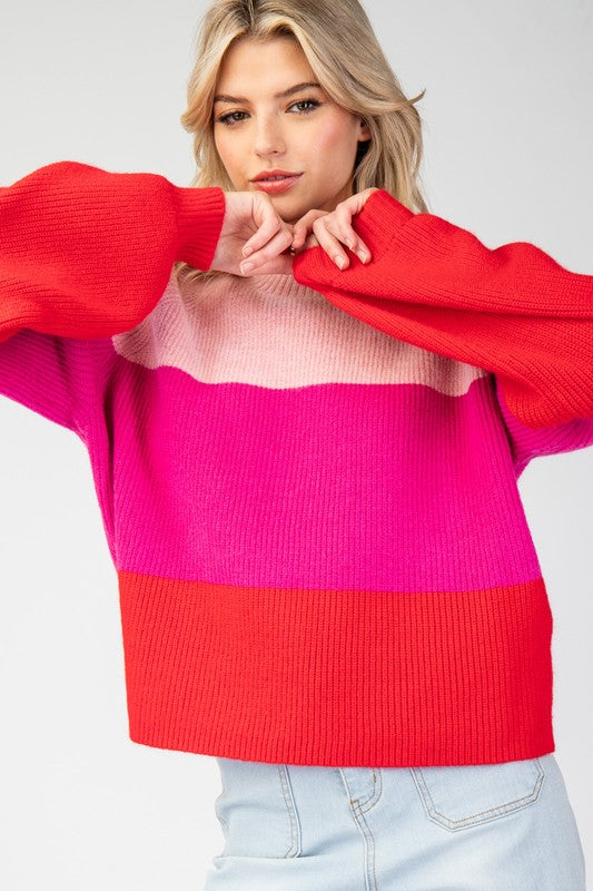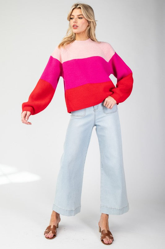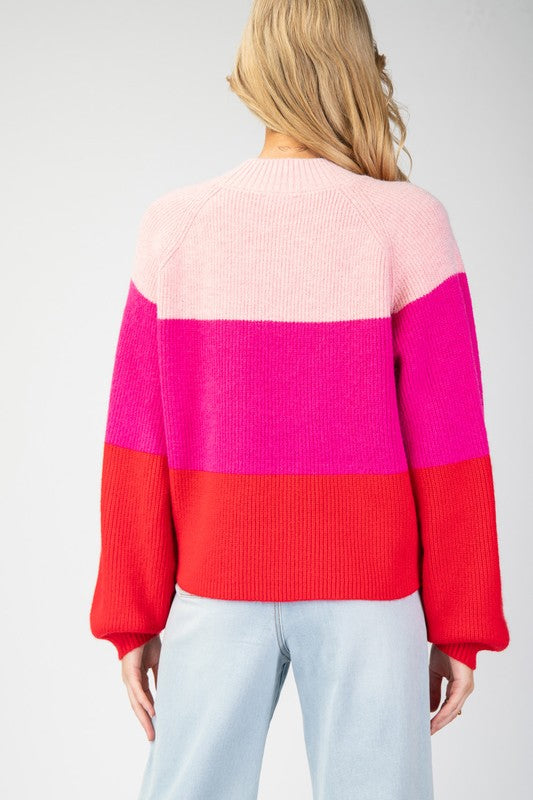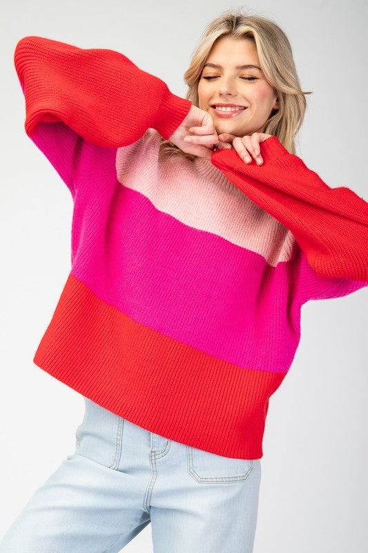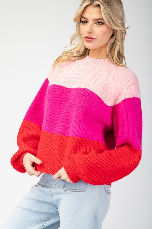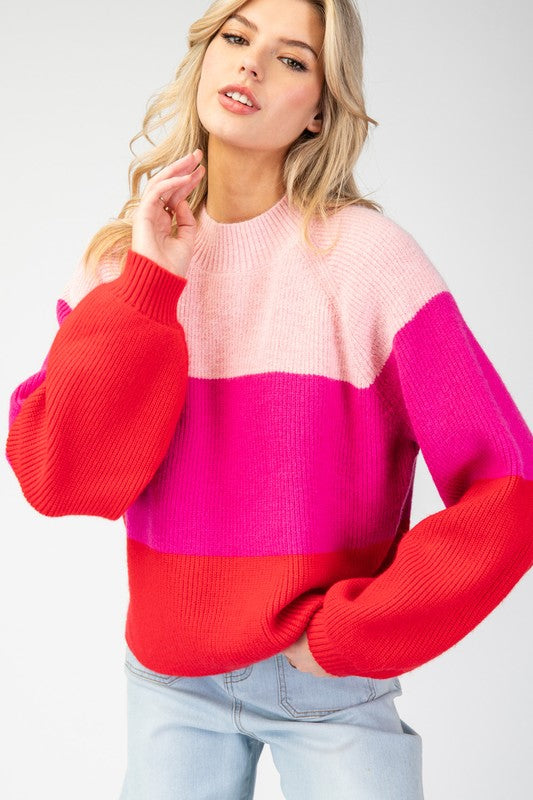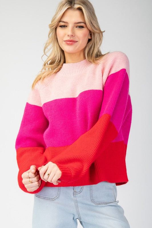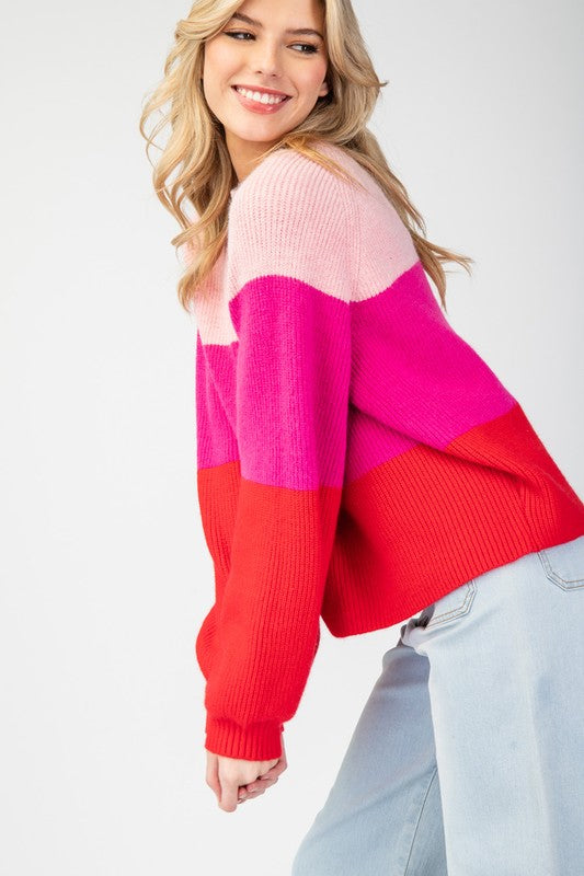 Pink Color Block Long Sleeve Sweater