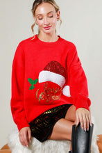Crew Neck Long Sleeve Santa Sequin Detail Sweater Top