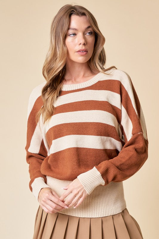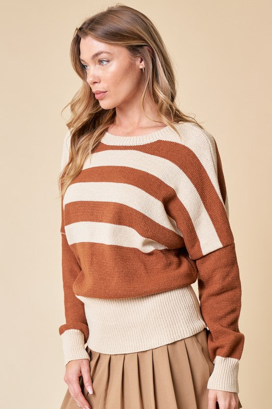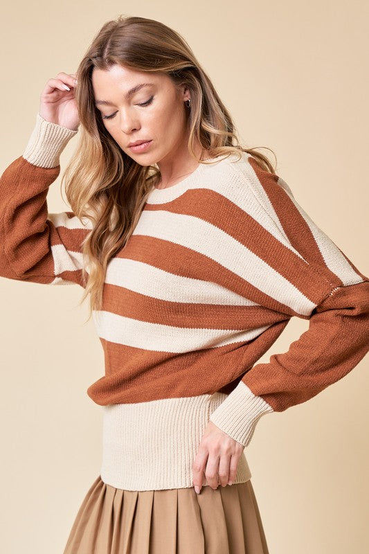 Camel/Cream Striped Oversize Sweater Top