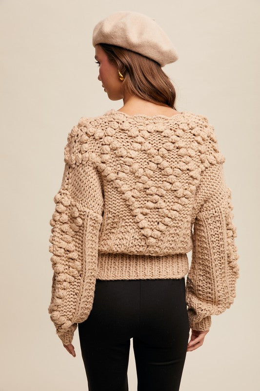 - Hand Crochet Tufted Dot Cable Knit Cardigan