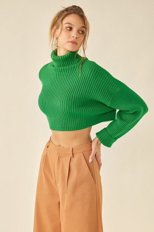 Turtle Neck Loose Fit Crop SweaterFabric:50% Rayon30% Nylon20% Polyester