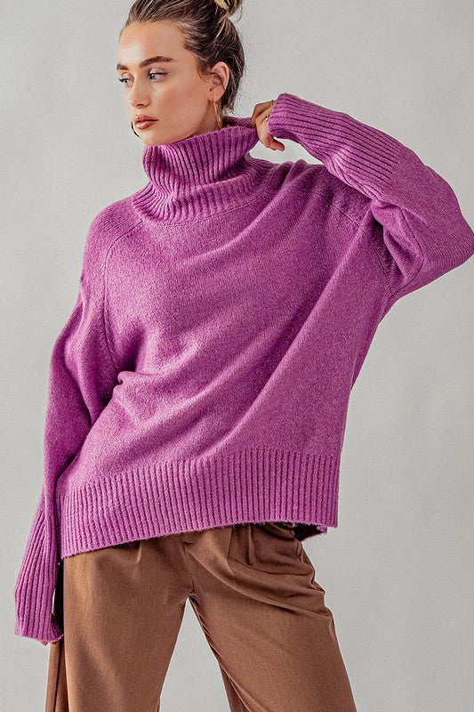 Vintage Plum High Turtle Neck Drop Shoulder Knit Top