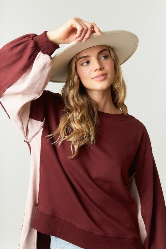 Color Block Pullover - French Terry- Round Neck- Long Sleeves
