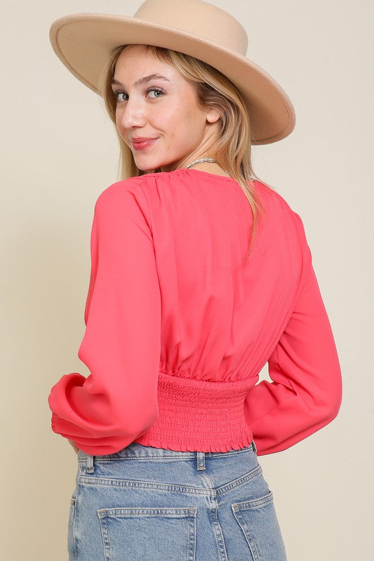 A Flowing Chiffon Top, With Its Sleeves Reaching Out Like A Graceful Dance, Graces Your Figure, Beckoning Admiration. The Neckline Plunges, Drawing The Eyes To Its Captivating V-Shaped Allure. Delicate Ruched Detailing Adorns This Ethereal Garment, An Homage To Elegance And Refinement.