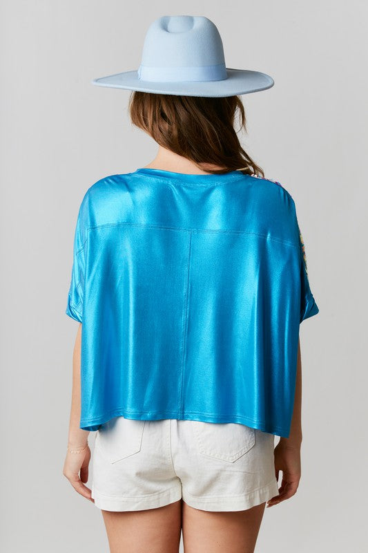 Aqua Geometric Sequins Crop Top
