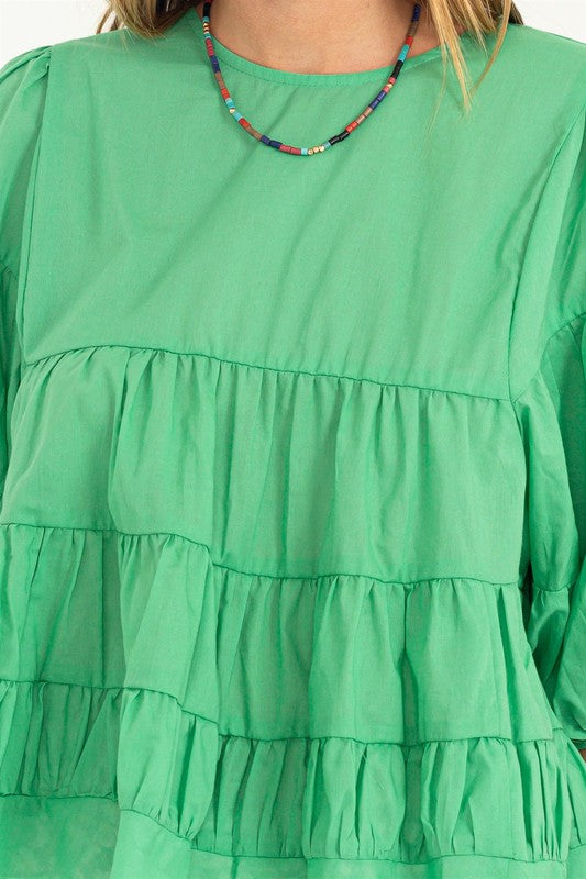 This Stunning Top Strikes The Balance Between Alluring And Cutesy, Featuring A Round Neck, Half Sleeves And Gathering Cuffs. The Billowy Bodice Will Keep You Feeling Relaxed, While Ruching Detailing Lends Textural Interest.